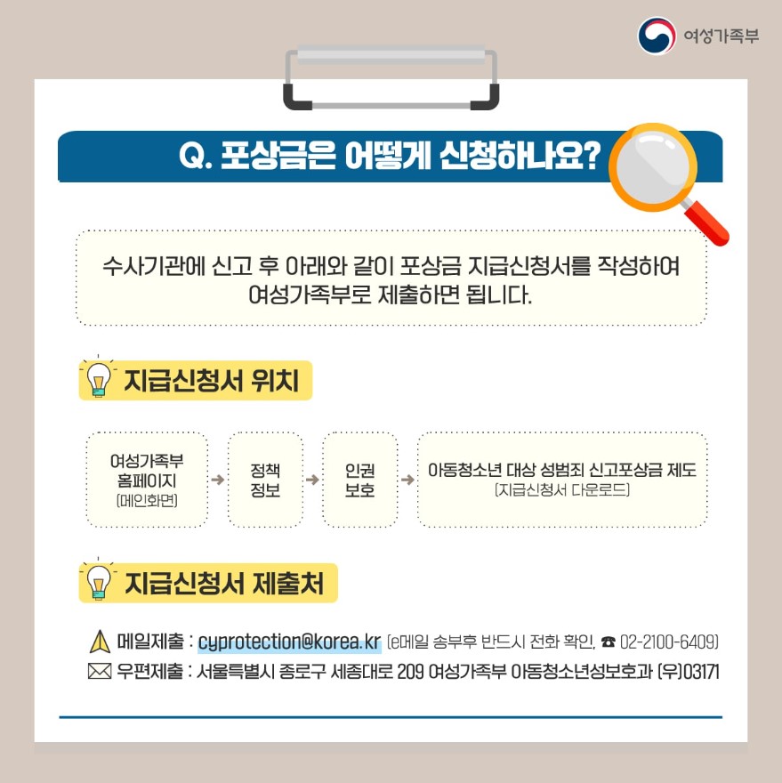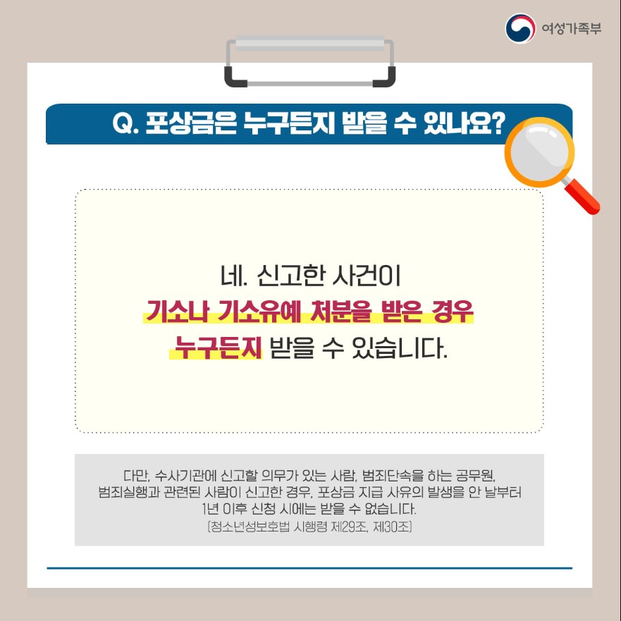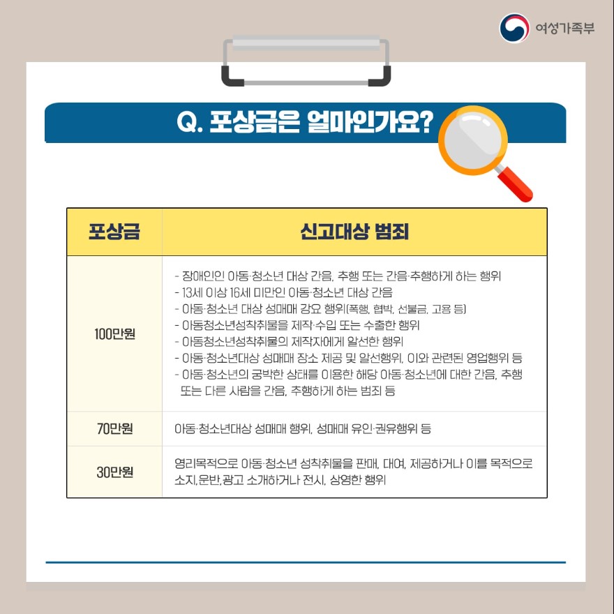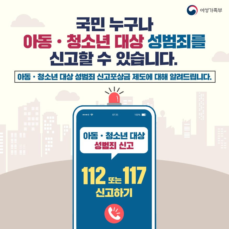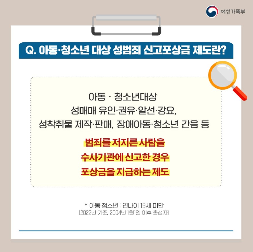 아동·청소년 대상 성범죄 신고포상금 제도에 대해 알려드립니다.
